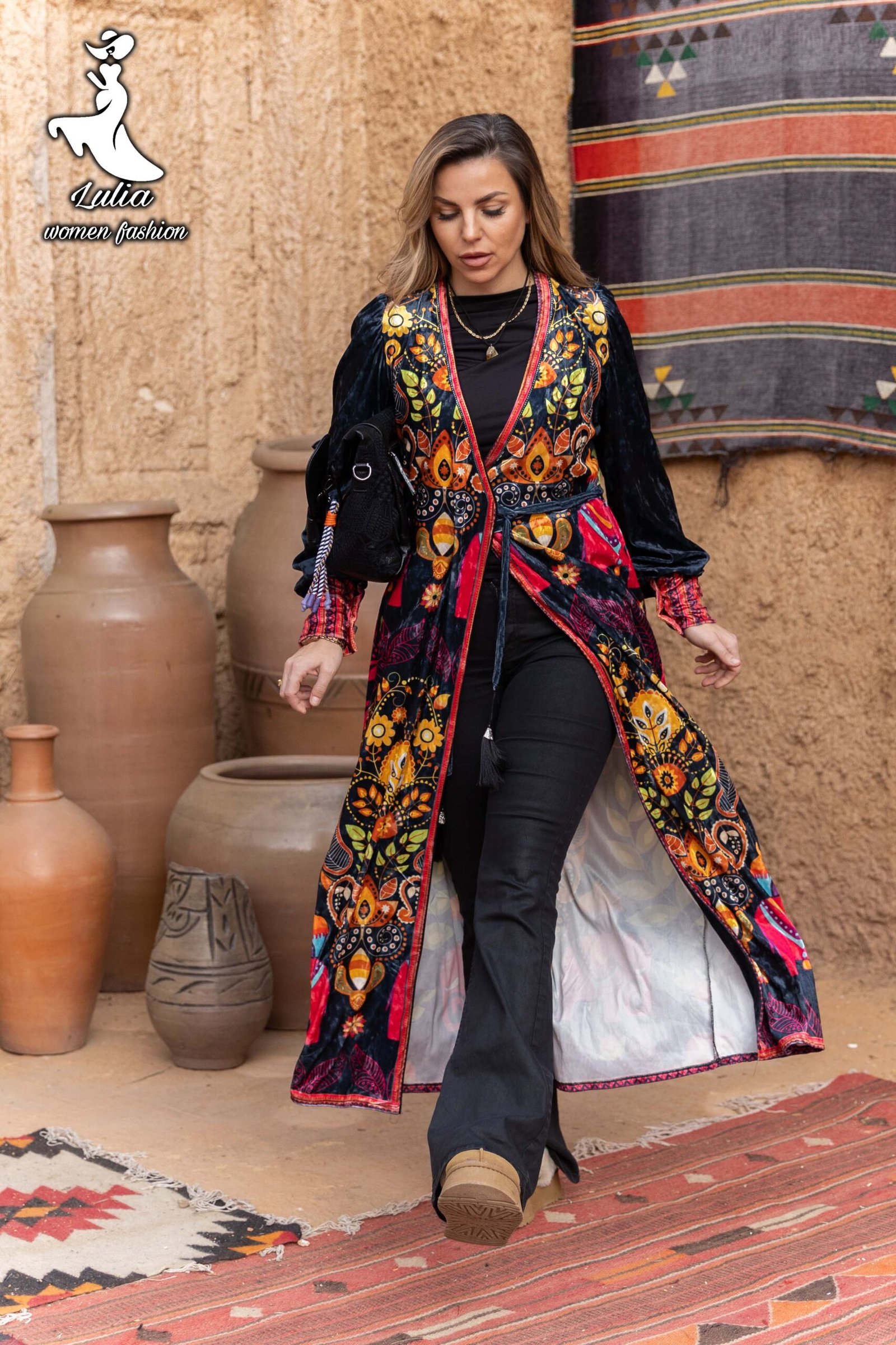 كاردجن قطيفه طويل مطبوع