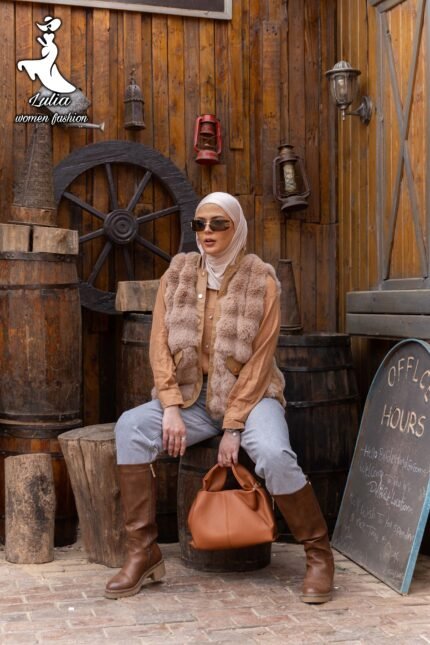 جاكت جلد كت الخامة : جلد + فرو المقاس : M(الصدر ٥٠ ، الطول ٦٤) L(الصدر ٥٤ ، الطول ٦٤)